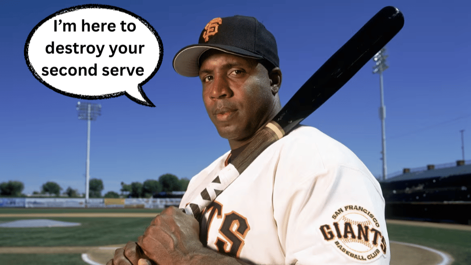 When you get a look at a second serve, swing like you’re Barry Bonds.