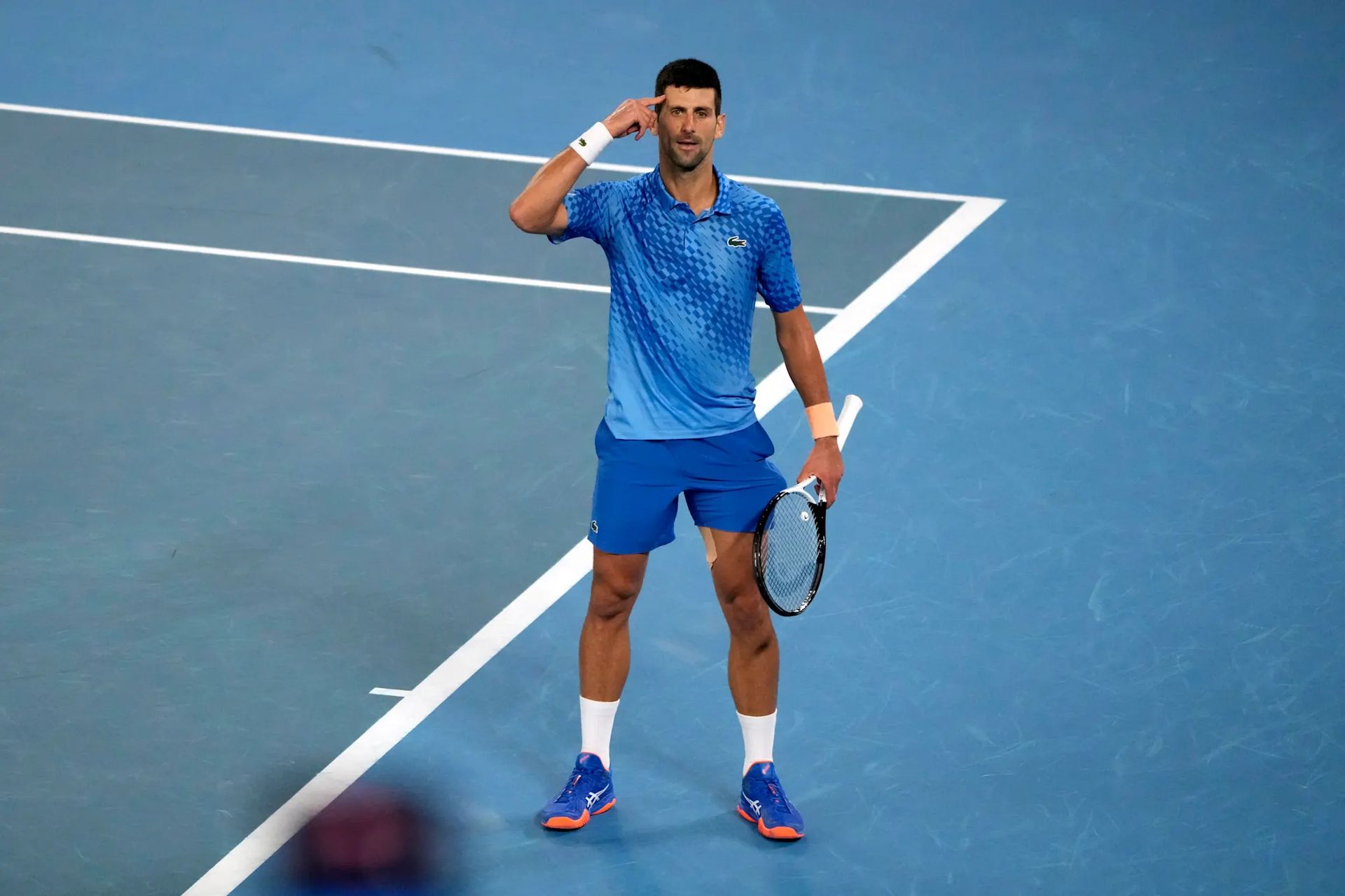 Djokovic pointing at where his game plan lives (AP)