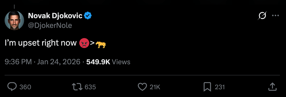 Good Morning. So many great WTA players have last names ending in -ova. Navratilova, Sharapova, Anisimova, the list goes on. So I’ve changed my name (see below). My USTA league opponents are cooked. Now let’s dive in.