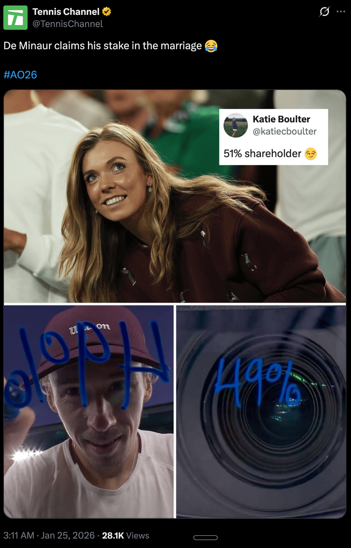 Boulter and De Minaur are fr couple goals (X/@Tennischannel)
