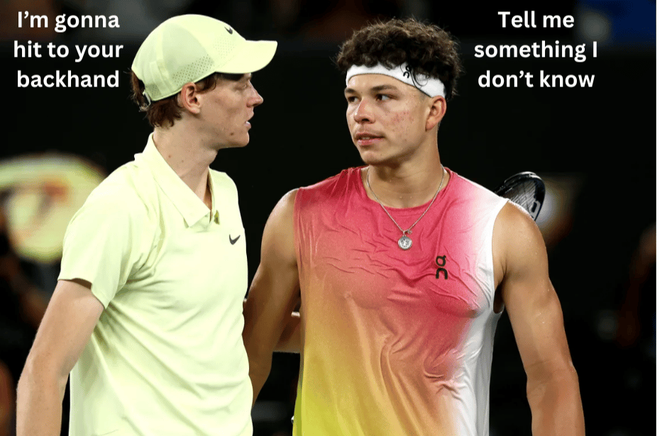 Shelton lookin’ like he wants to punch Sinner’s Gucci-sponsored face
